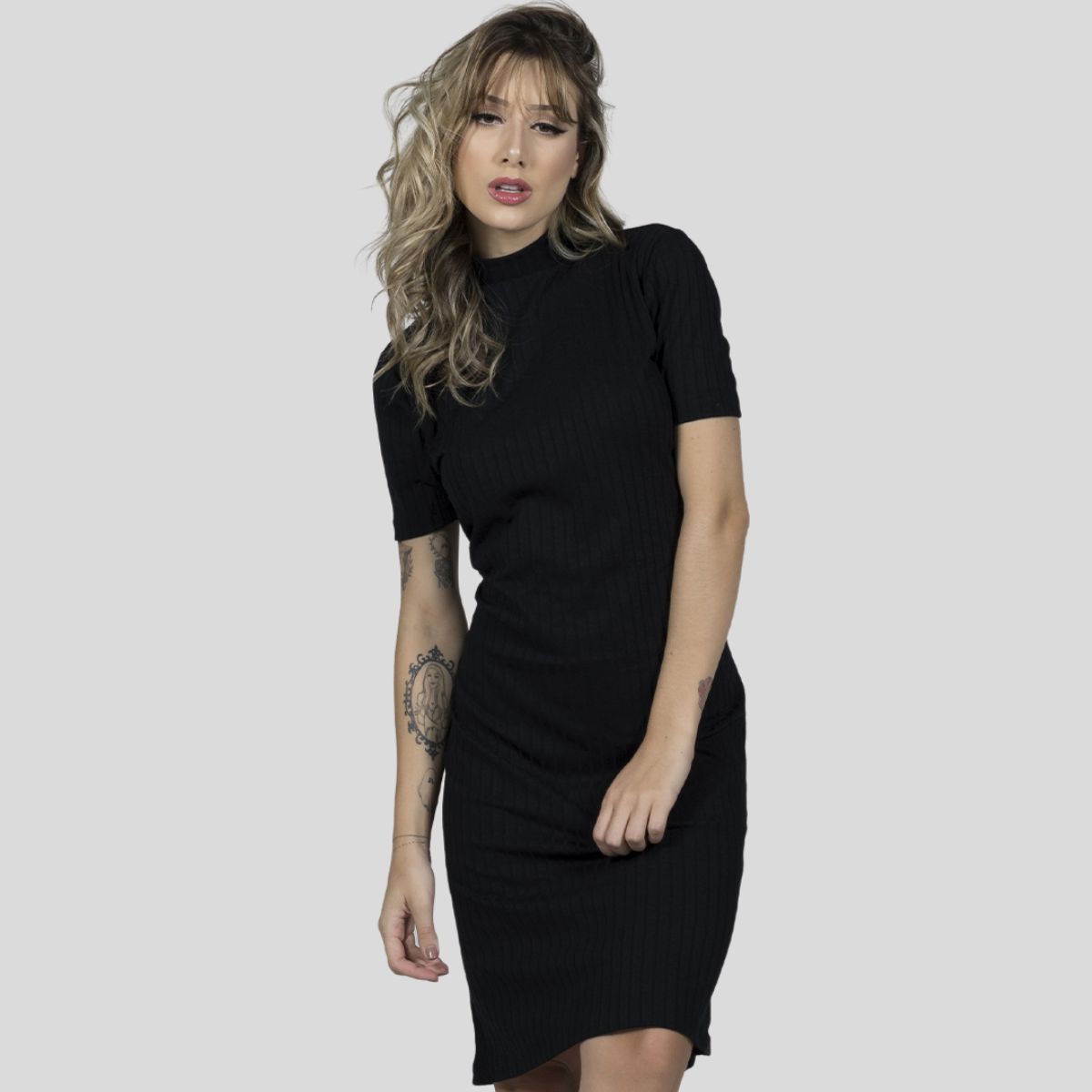 Confeccionado em tecido canelado, esse modelo de vestido possui modelagem midi, gola alta e mangas curtas. Com cores básicas, ele é uma peça indispensável para todas as ocasiões e pode ser utilizado para compor looks casuais, despojados e modernos. Confortável e com excelente caimento, sua modelagem se adequa ao corpo.